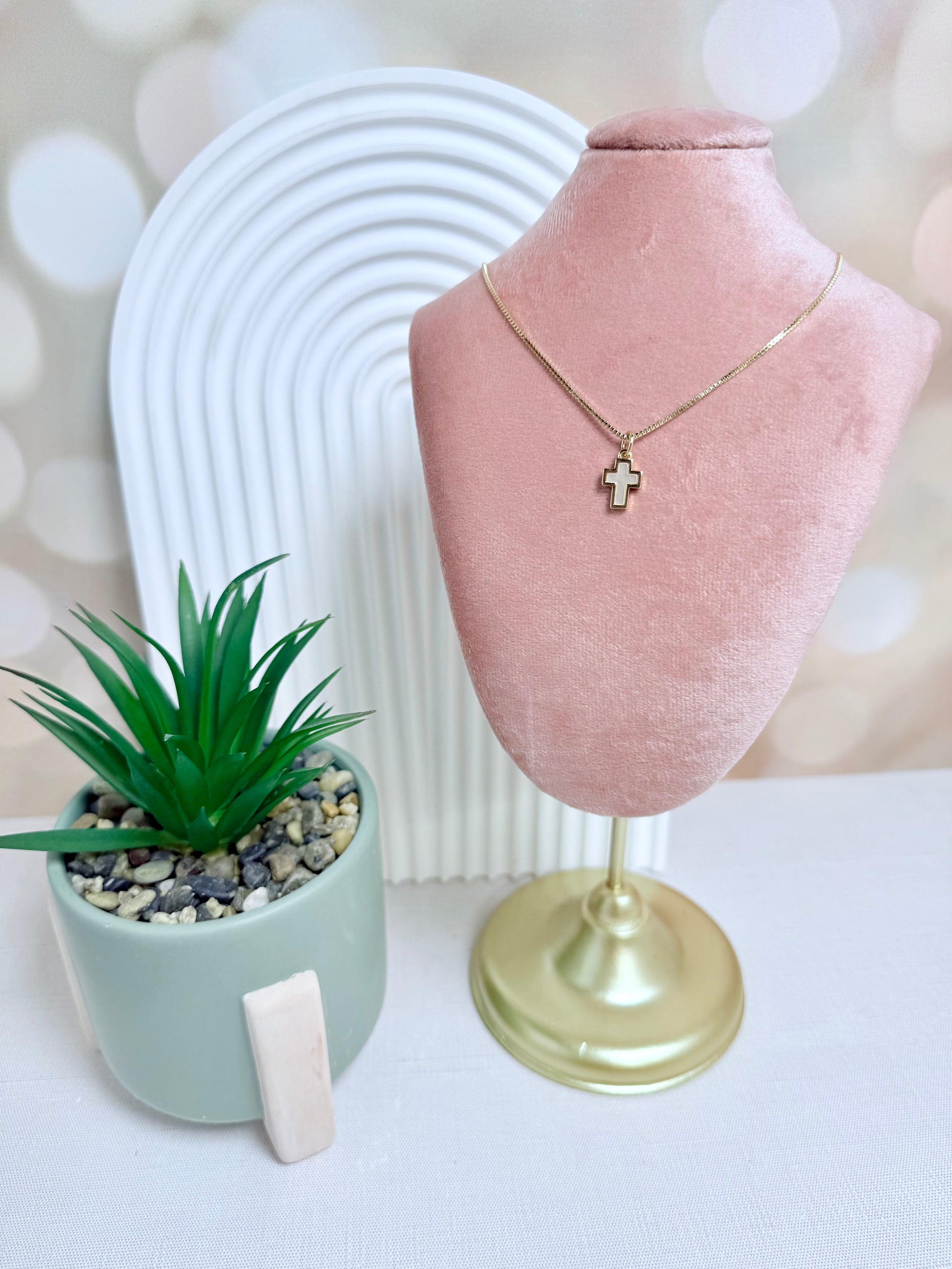 Gold filled necklace with mother of pearl gold cross