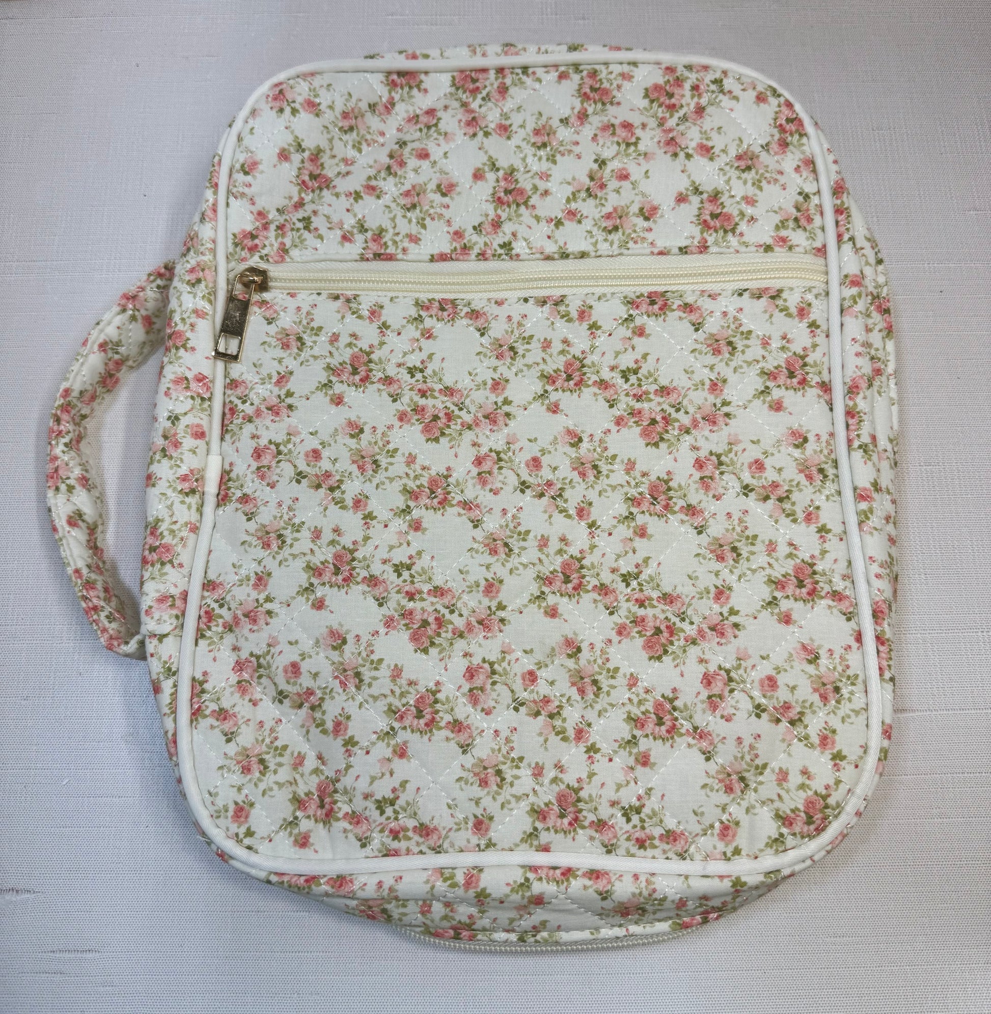 Quilted Bible cover with pink rose design
